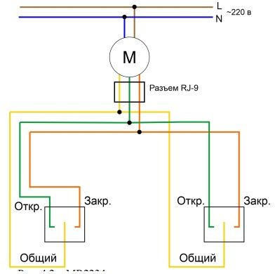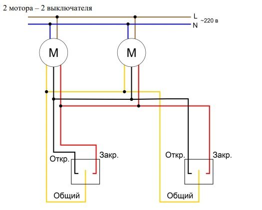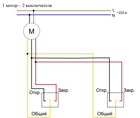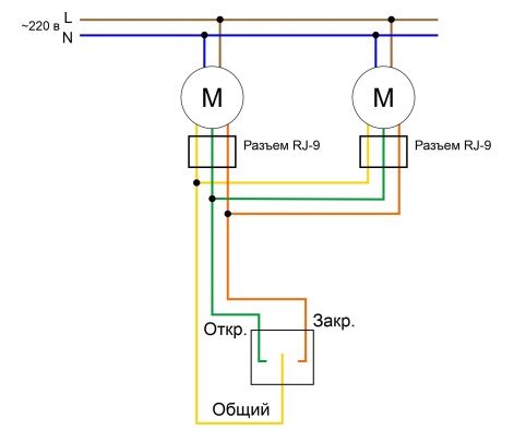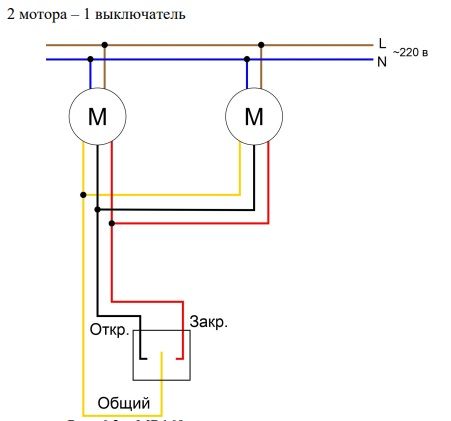 Подключение раздвижного и рулонного карниза по сухому контакту к одному выключателю